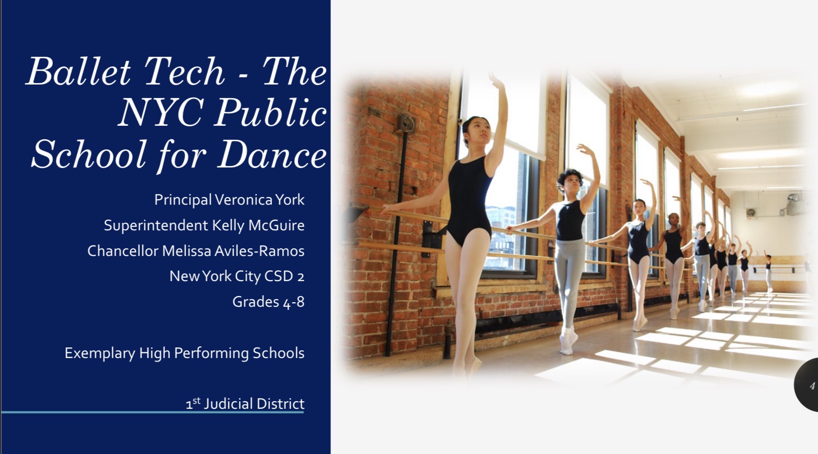 In November of 2025, Ballet Tech – The NYC Public School for Dance was recognized by the New York State Department of Education as a Blue Ribbon School. We are honored to be recognized alongside 18 other NY schools who demonstrate remarkable academic excellence, innovation, equity, and opportunity for every student.
